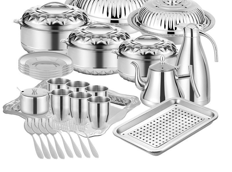 3/4/6/21/28PCS Double-Deck Stainless Steel Silver Pots Sets Cuisine Lunchboxes Food Container Heat Preservation Insulation Box