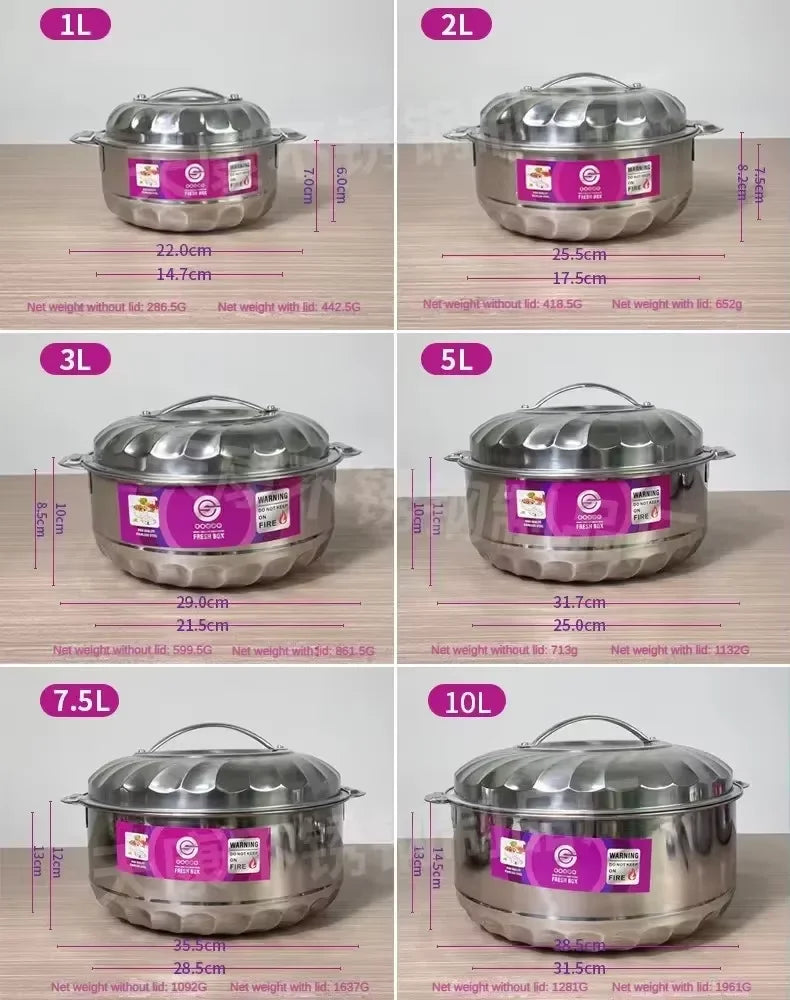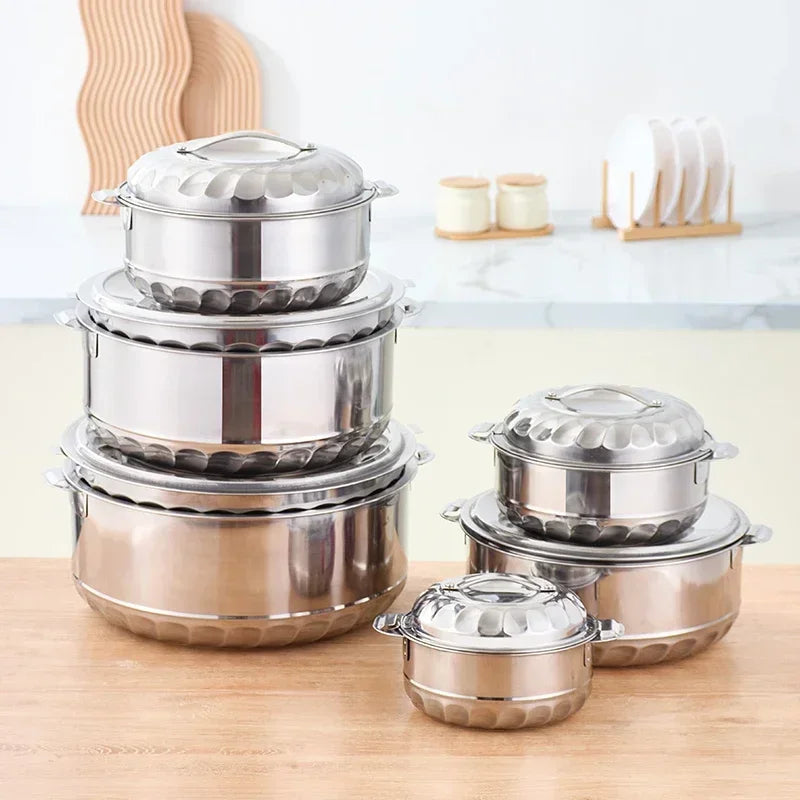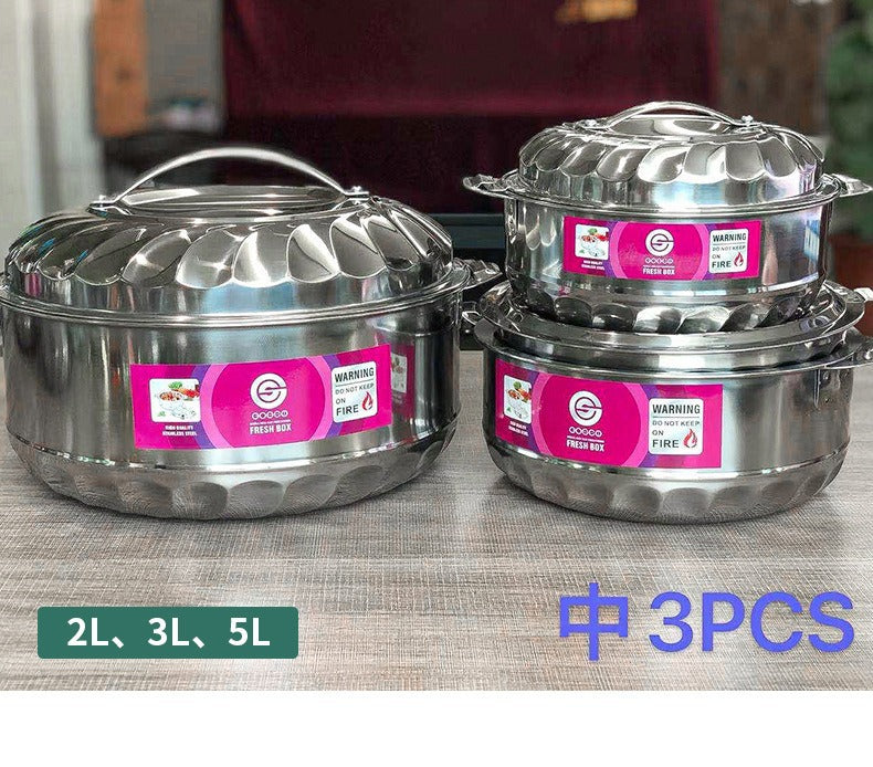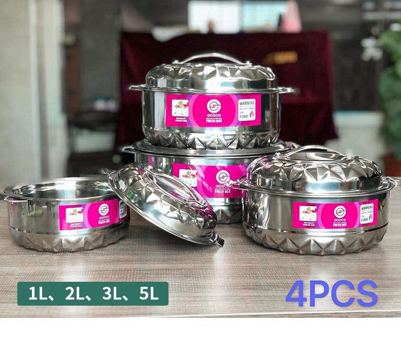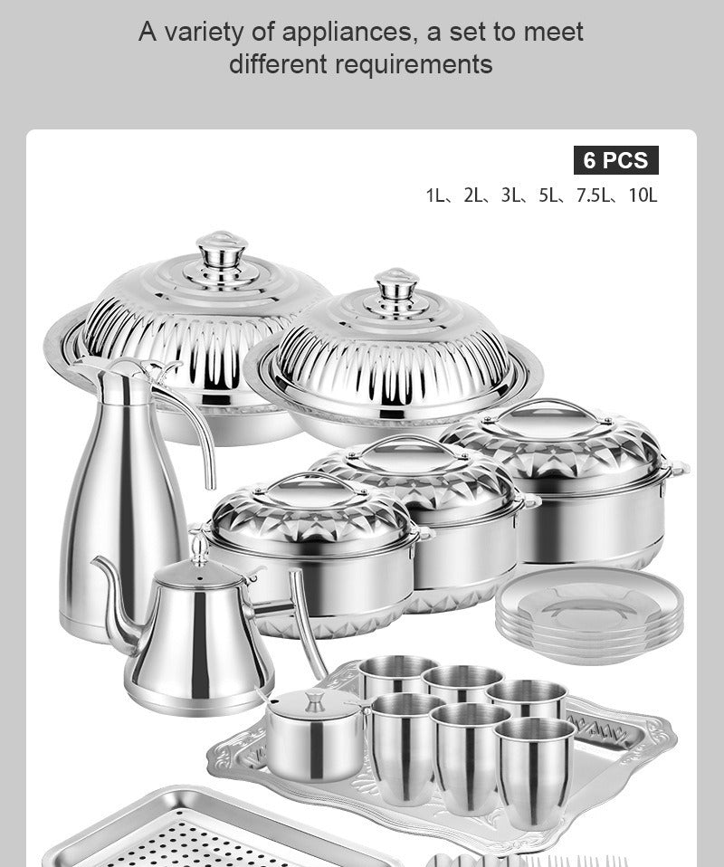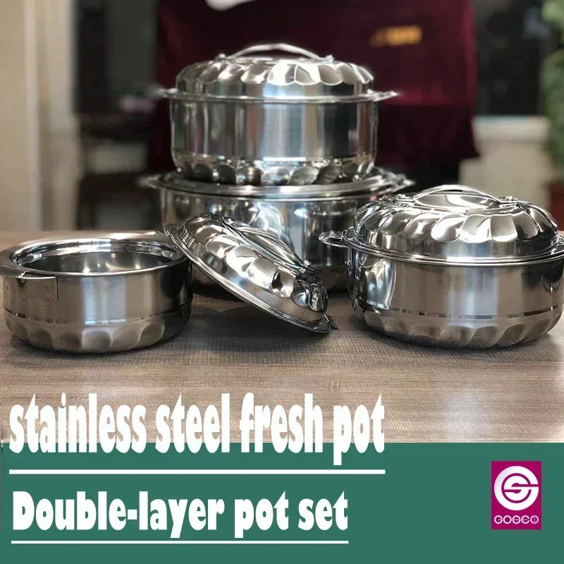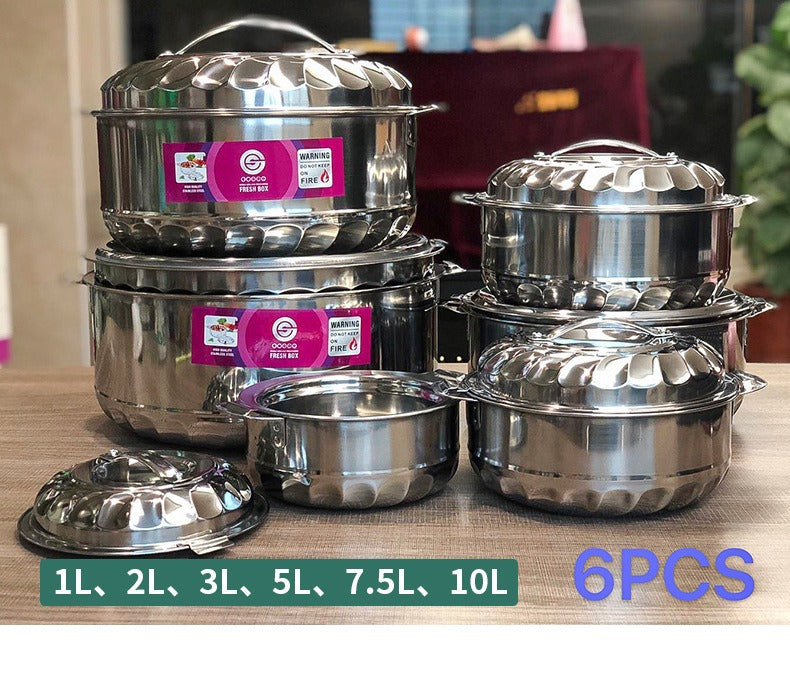 6PCS/4PCS Double-deck All-Steel Kitchen Silver Pots Sets Cuisine Lunchboxes Heat Preservation Fresh Box Food Container