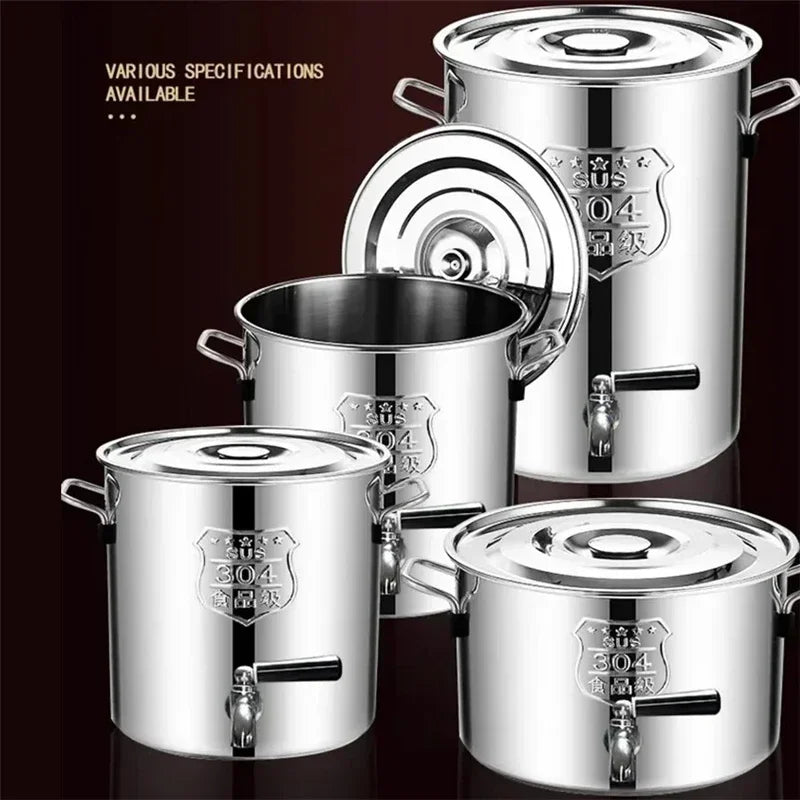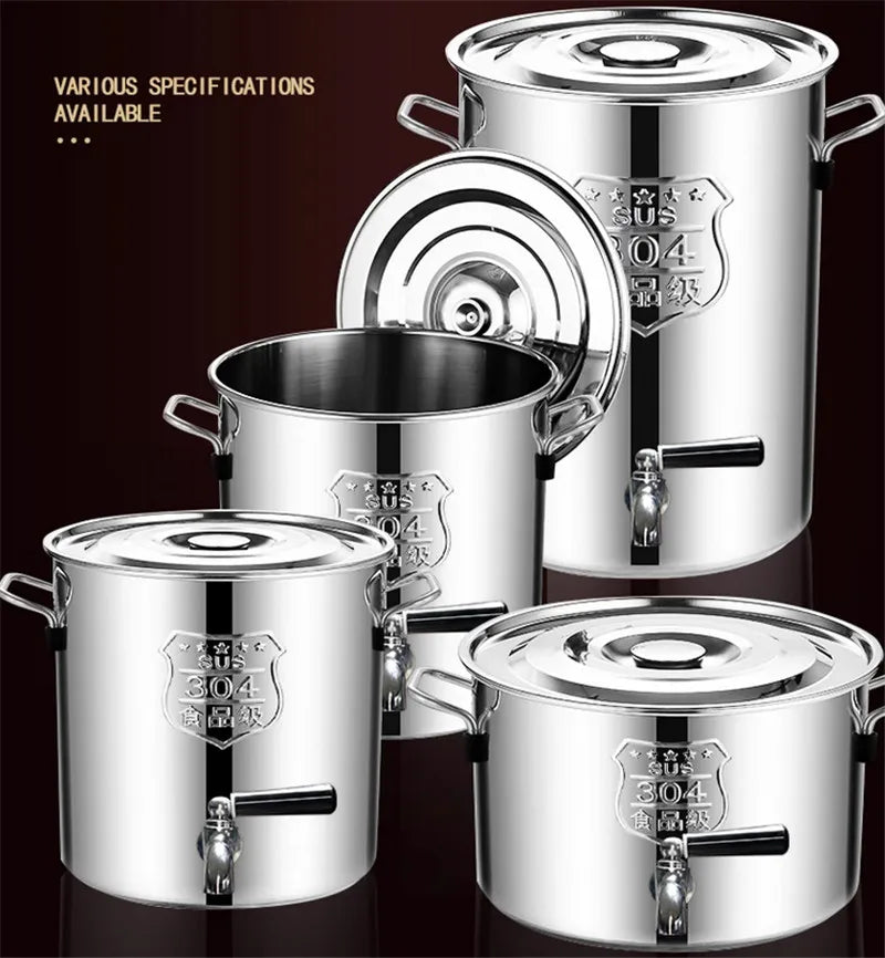 304 stainless steel pot faucet dispenser Large big capacity water storage bucket barrel soup bucket with lid soup pot cookware
