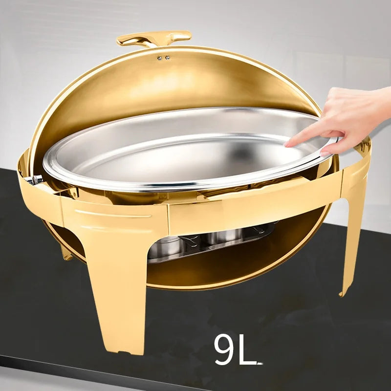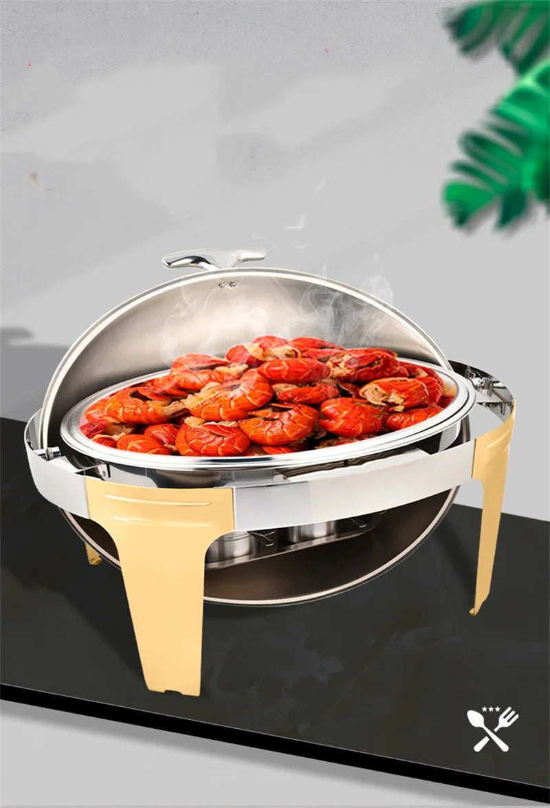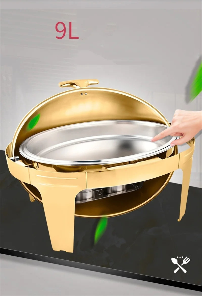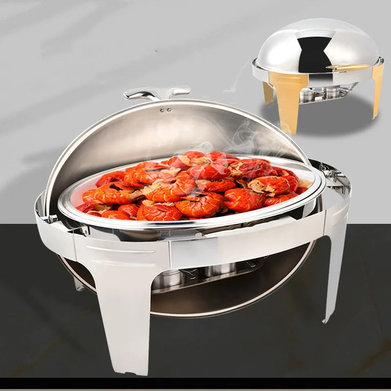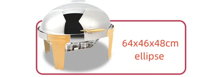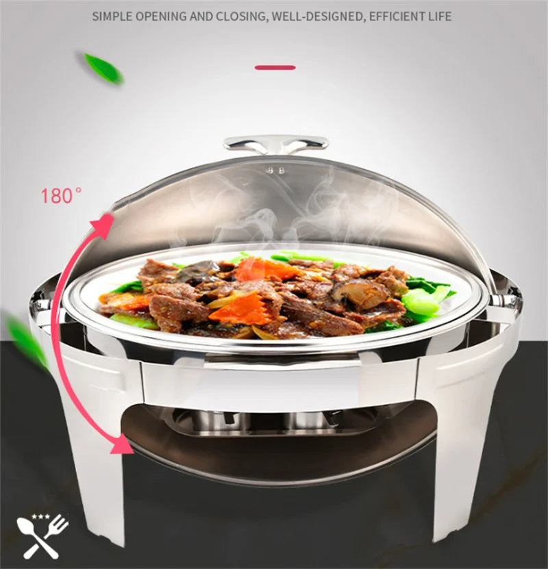 6L9L ellipse Food Warmer Stove Round Flip-Top Visual Buffet Stove Restaurant Stainless Steel Self-Service Tableware chafing dish