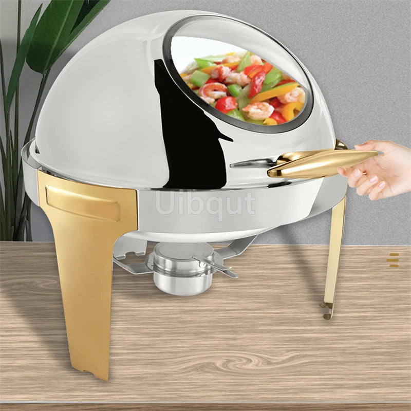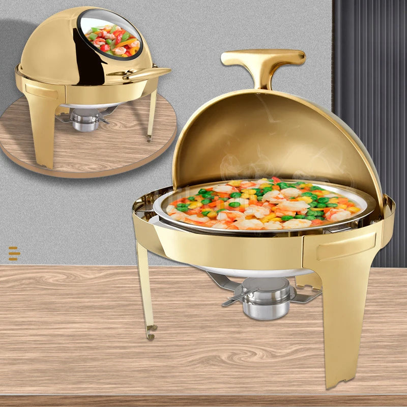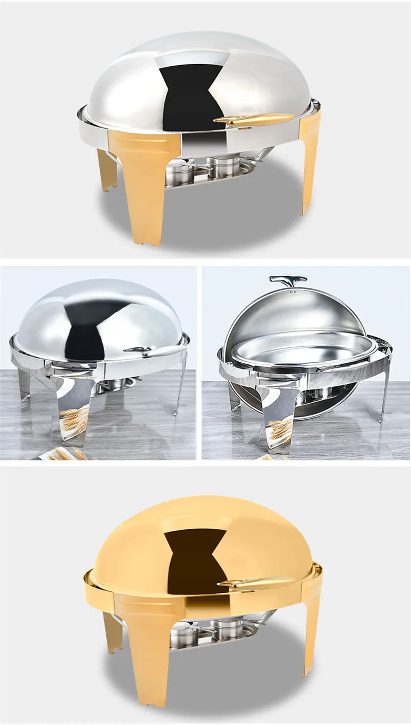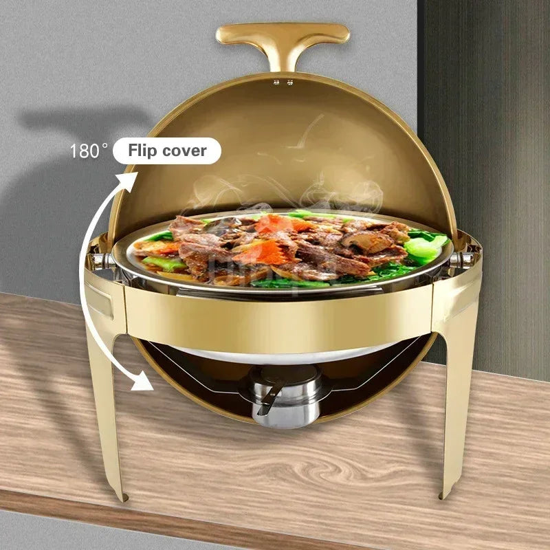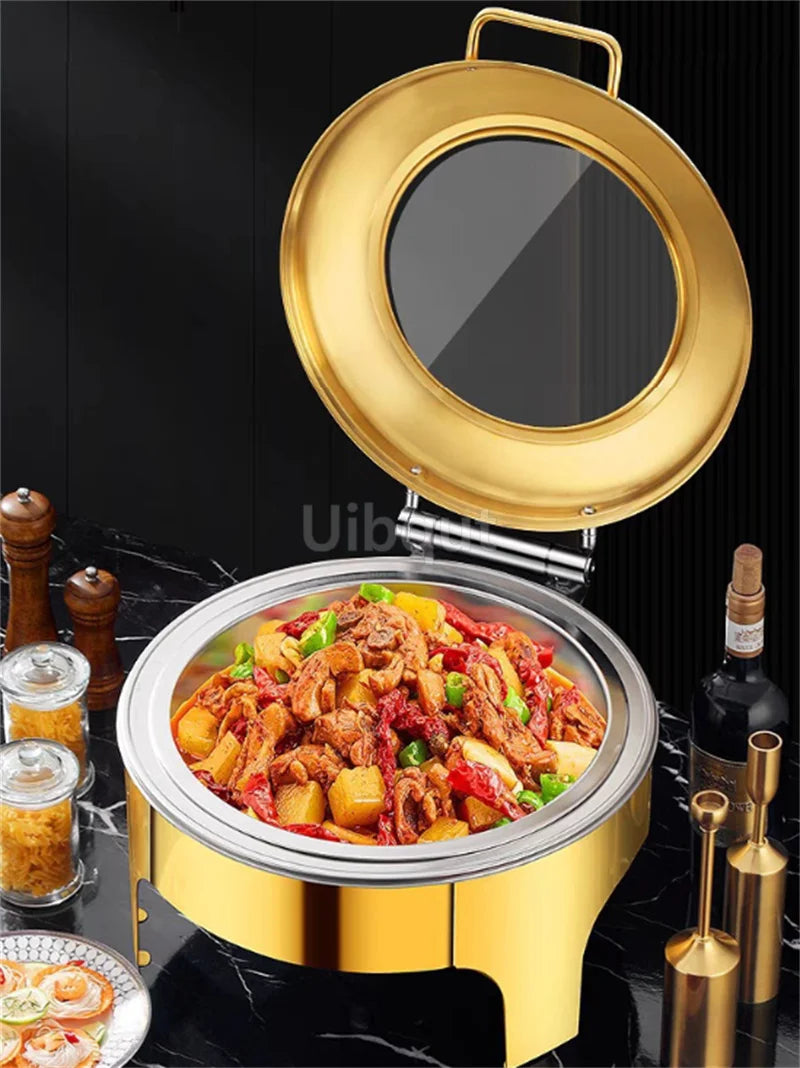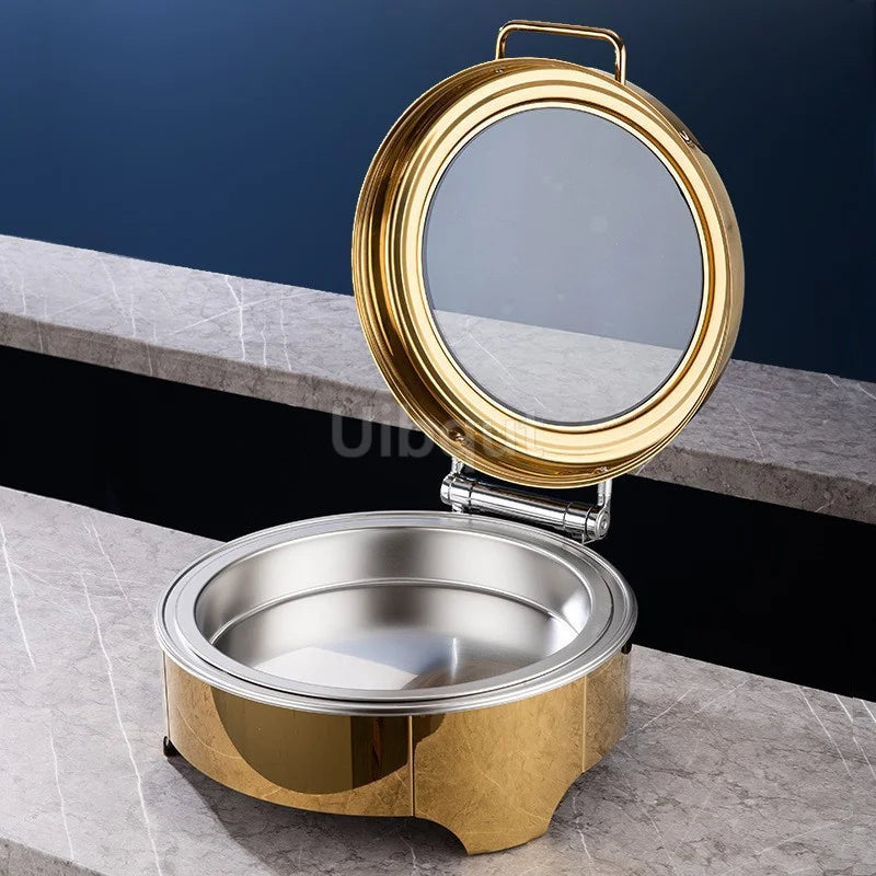 6L9L ellipse Food Warmer Stove Round Flip-Top Visual Buffet Stove Restaurant Stainless Steel Self-Service Tableware chafing dish