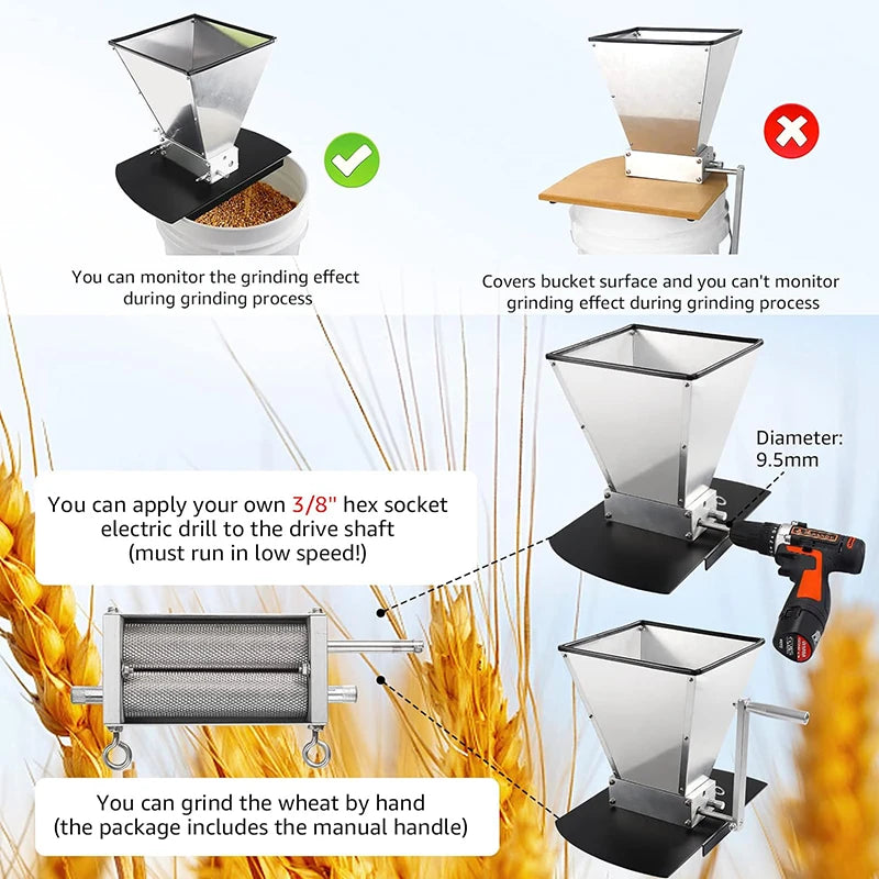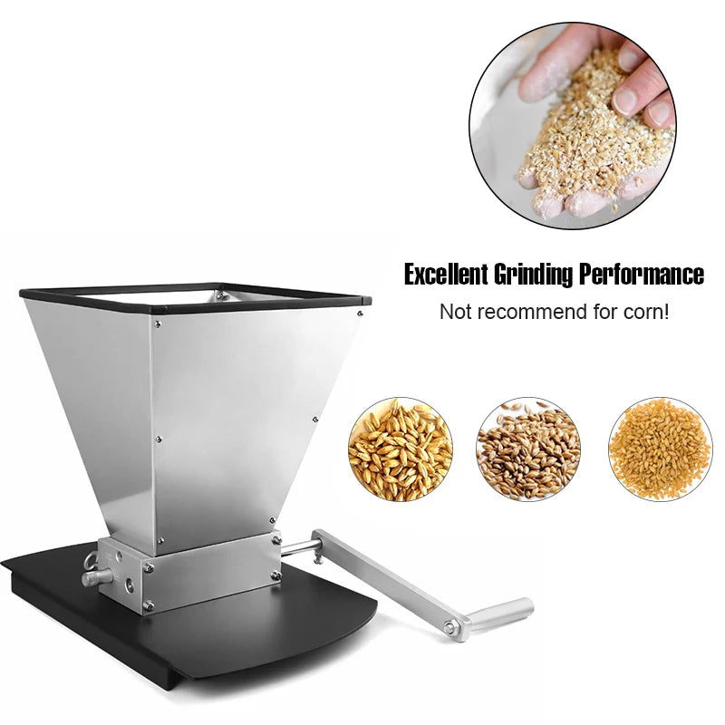7.7LB Manual Malt Mill 2 Roller Stainless Steel Grain Crusher With Metal Base for Wheat Corn,Compatible with Electric Drill