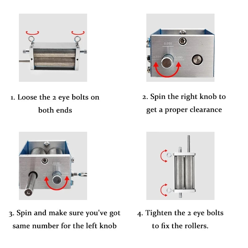 · Material: Stainless Steel 304 Rollers, Aluminum Hoppers