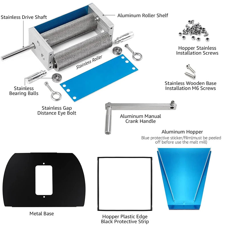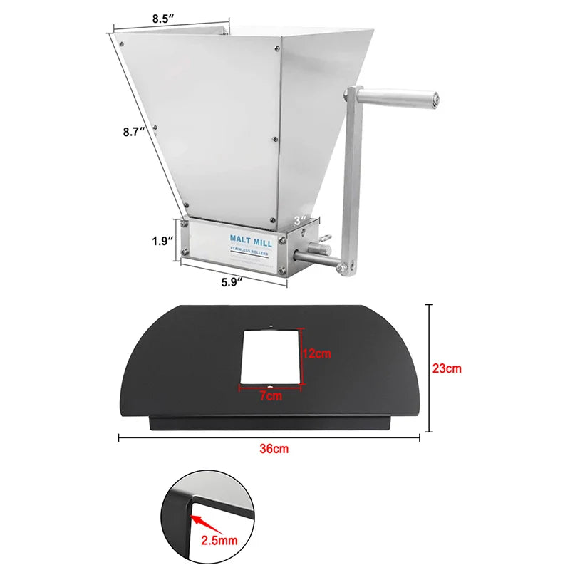 Elevate your home brewing experience with our Metal Base Malt Crusher. This premium malt mill is designed for home brewers seeking control and efficiency in their malt crushing process. Crafted with high-quality materials and featuring an adjustable 2-roller grinding system, this malt mill is perfect for milling a variety of grains with precision and ease.