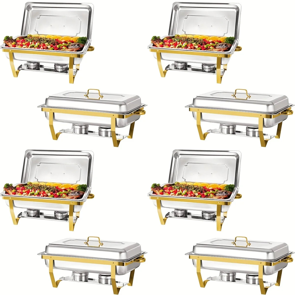 8pcs 9QT Golden Stainless Steel Chafing Dishes for Buffet, Buffet Warmers Sets for Parties Weddings Catering Buffet