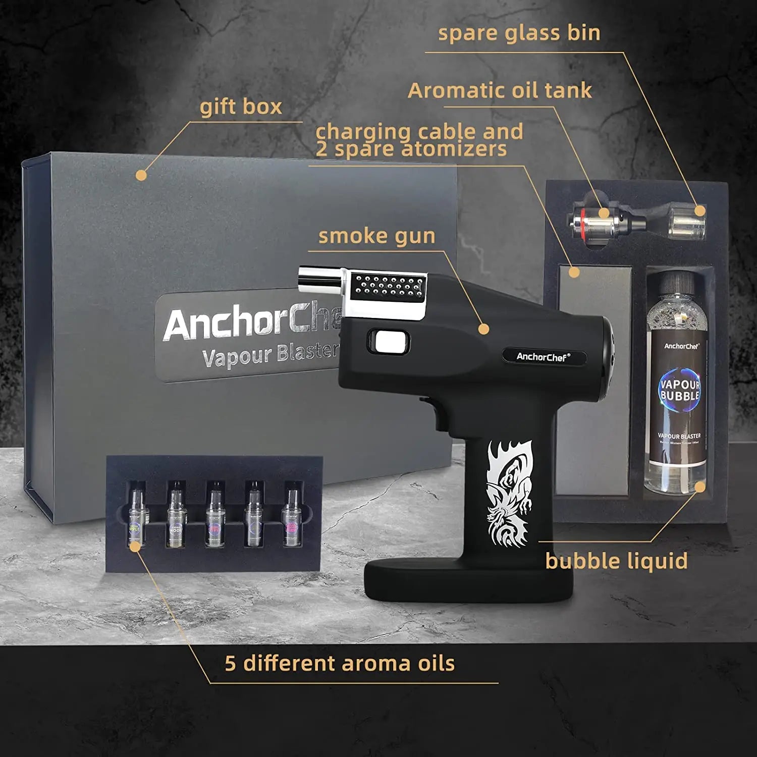 Cocktail Smoker Kit, Handheld Smoked Bubble Gun,Smoke Generator Tool, Vapour Blaster, Herb Extract Essential Oil Smoker, USB Charging Bubble Gun for Cocktail Drink,Whiskey,Meat, Pizza and Food Cooking, Herb Extract Essential Oil Smoker, Good For Smoked Food, Cocktails