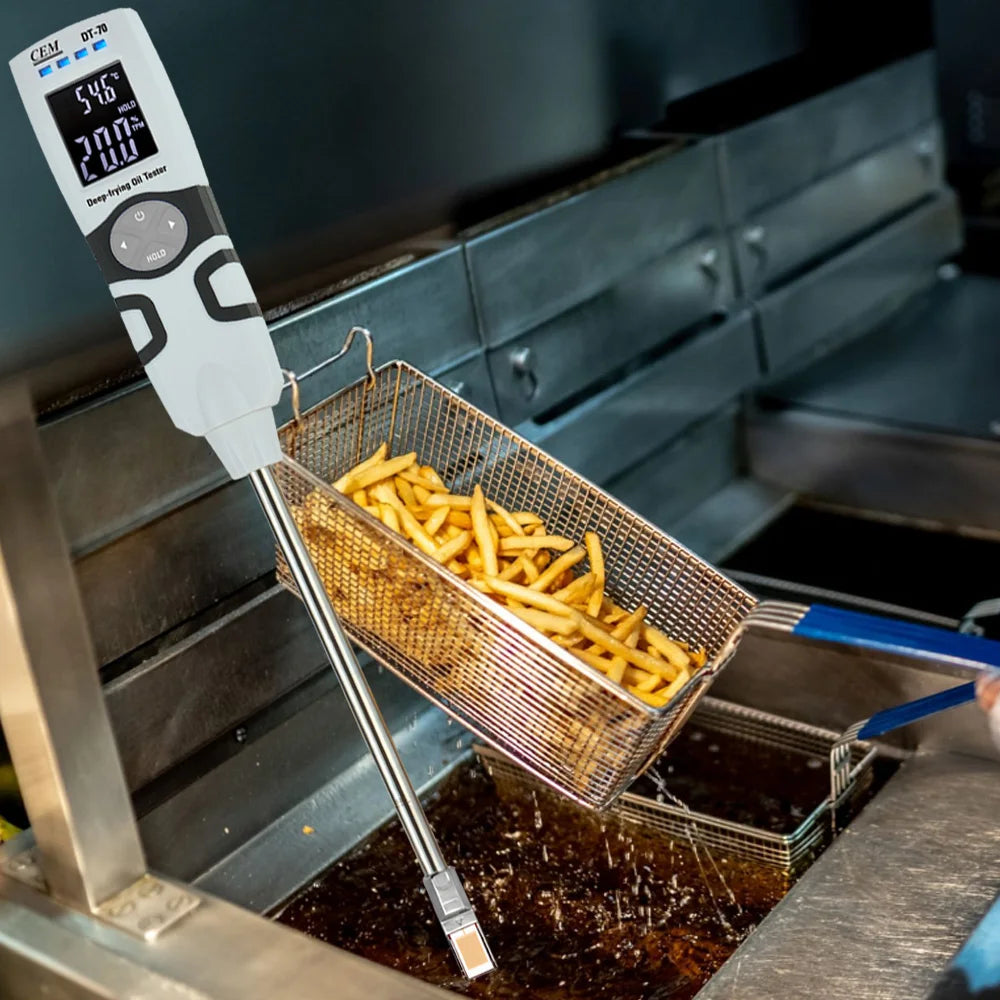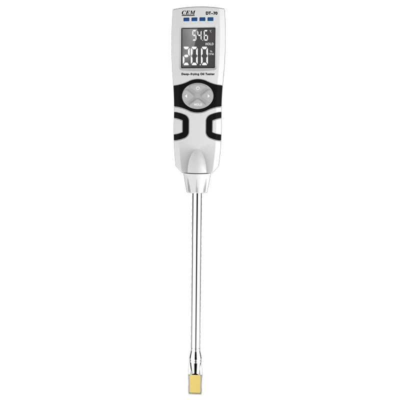 DT-70 is a handy measuring instrument for fast testing of cooking oils. It can display the temperature of the cooking oil and TPM value.The TPM value (total polar materials) enables a statement on the ageing of cooking oils due to the effects of heat.