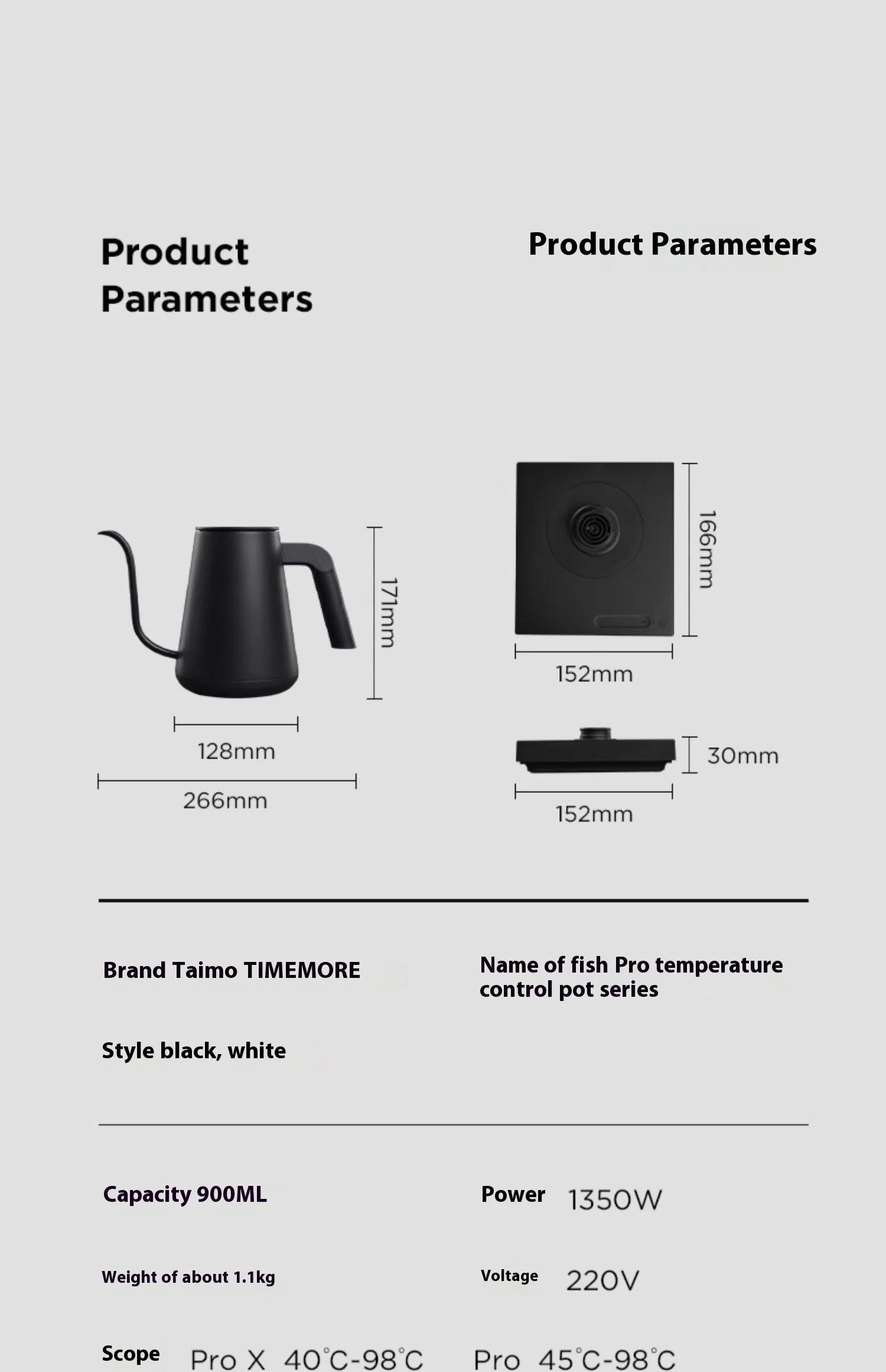 attribute: PJTM000178,TIMEMORE,stainless steel,Timemore Fish Pro X,Electric kettle,Kettle,Hand-made coffee pot