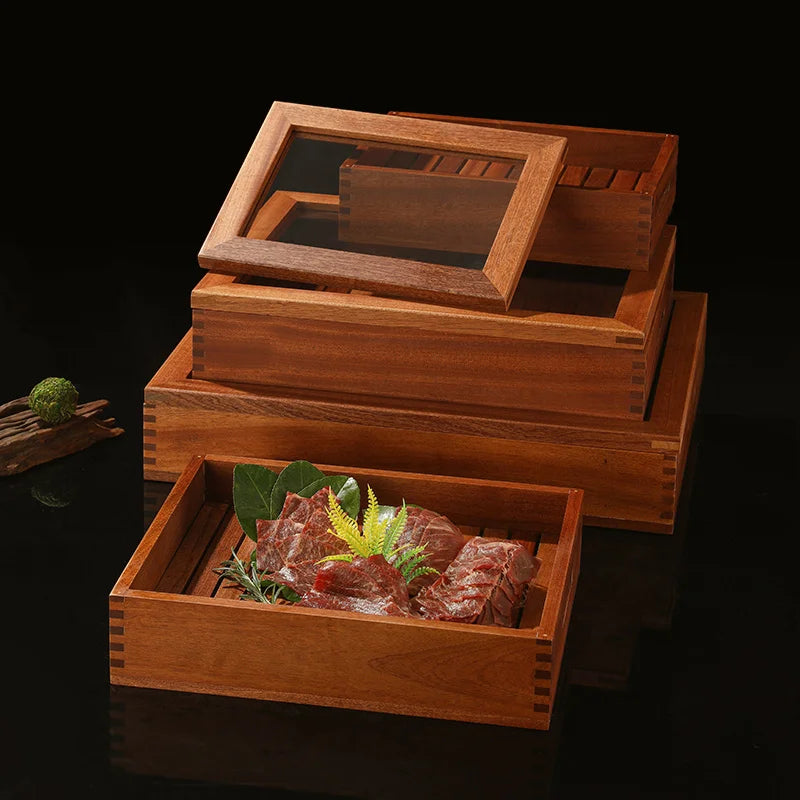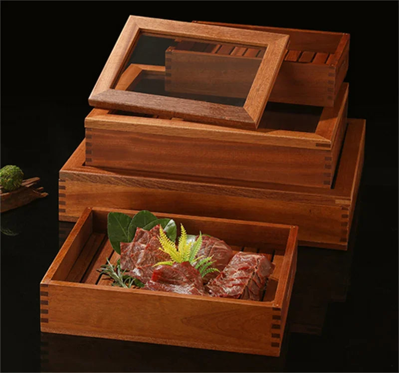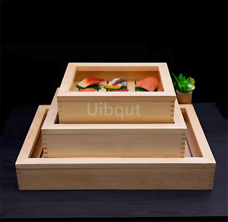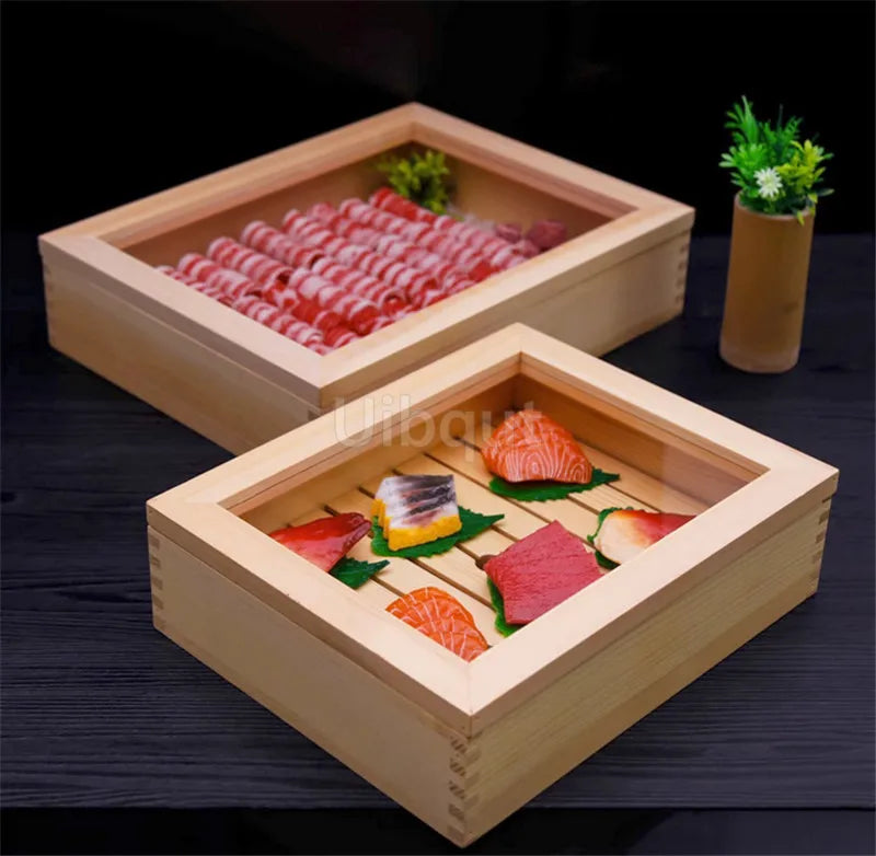 Japanese cuisine wooden sashimi Sushi box with lid fish salmon boxs wooden boxs beef plate box restaurant tableware food storage