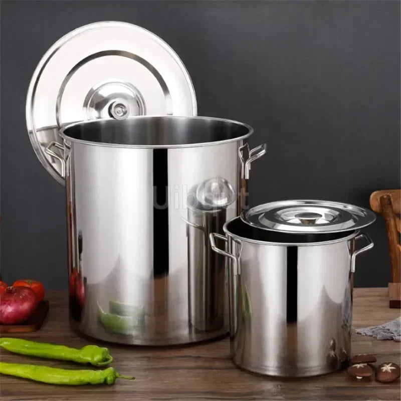 large Stainless steel thick Soup pot with handle lid big pot bucket pail water barrel household chef used kitchen cooking pots