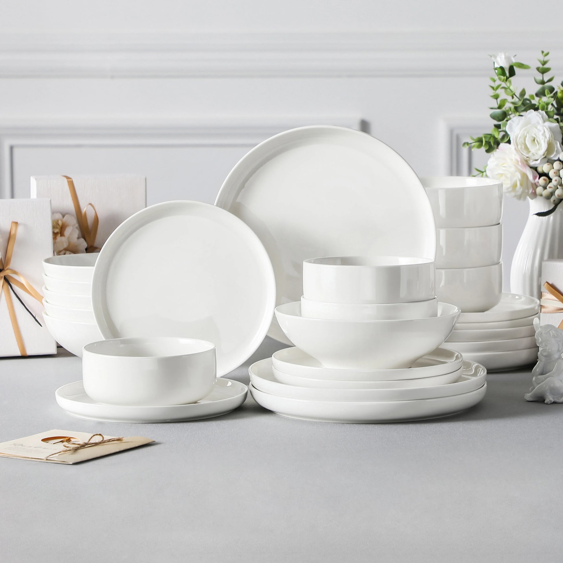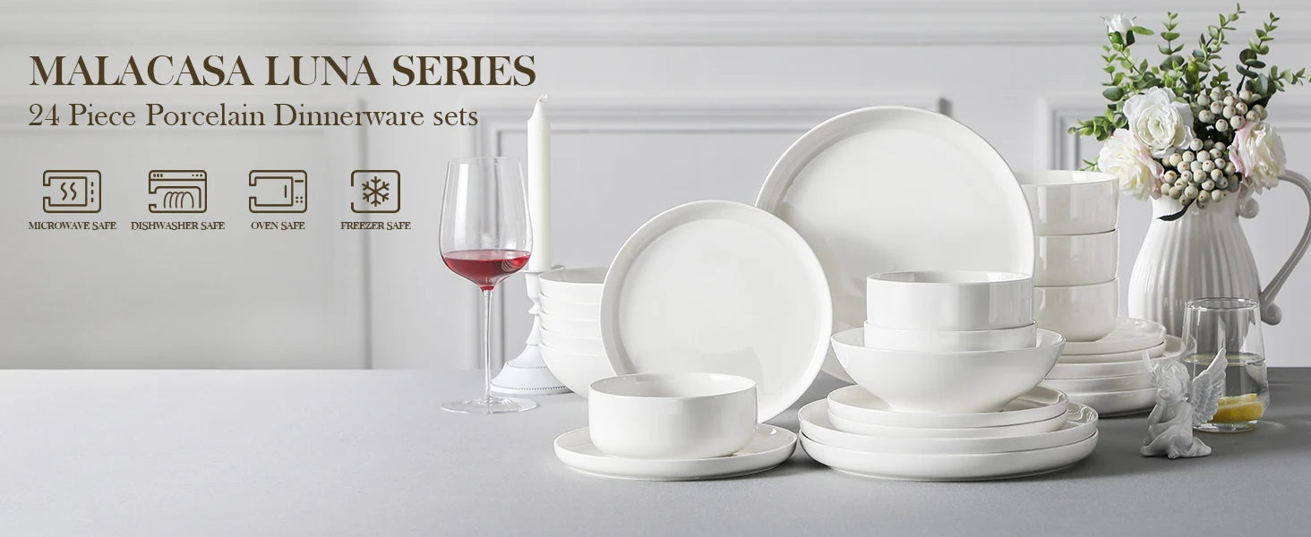 MALACASA 24 Piece Ceramic Plates White Dinnerware Set with 6 Pcs Dinner/Dessert Plates/Soup/Bowl Tableware Set Service for 6