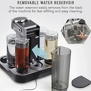 Less Time Cleaning, More Time EnjoyingThe automatic rinse minimizes cleaning and prevents the previous cocktail's ingredients from mixing with the next one. Capsules up with spring assistance for quick removal and glass bottles are dishwasher safe. |