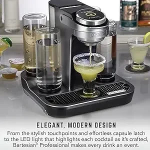 From the stylish touchpoints and effortless capsule latch to the LED light that highlights each cocktail as it's crafted, Bartesian Professional makes every drink an event.