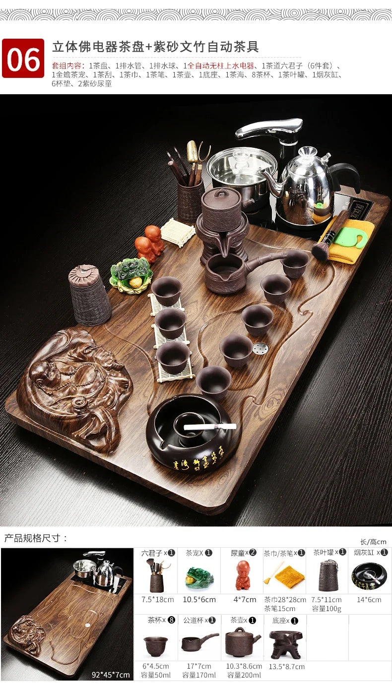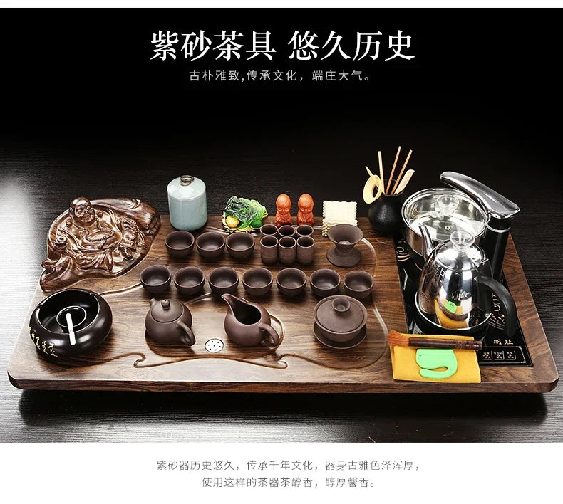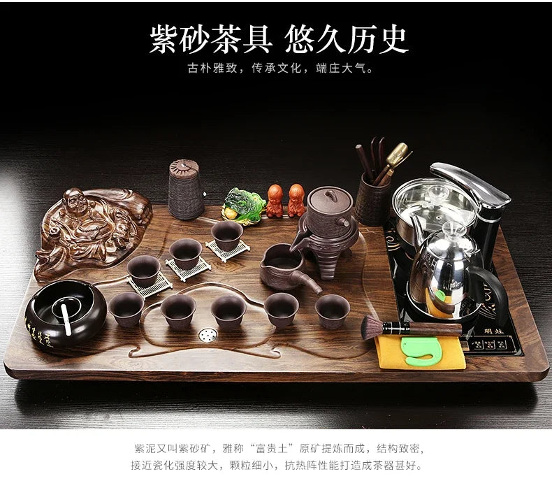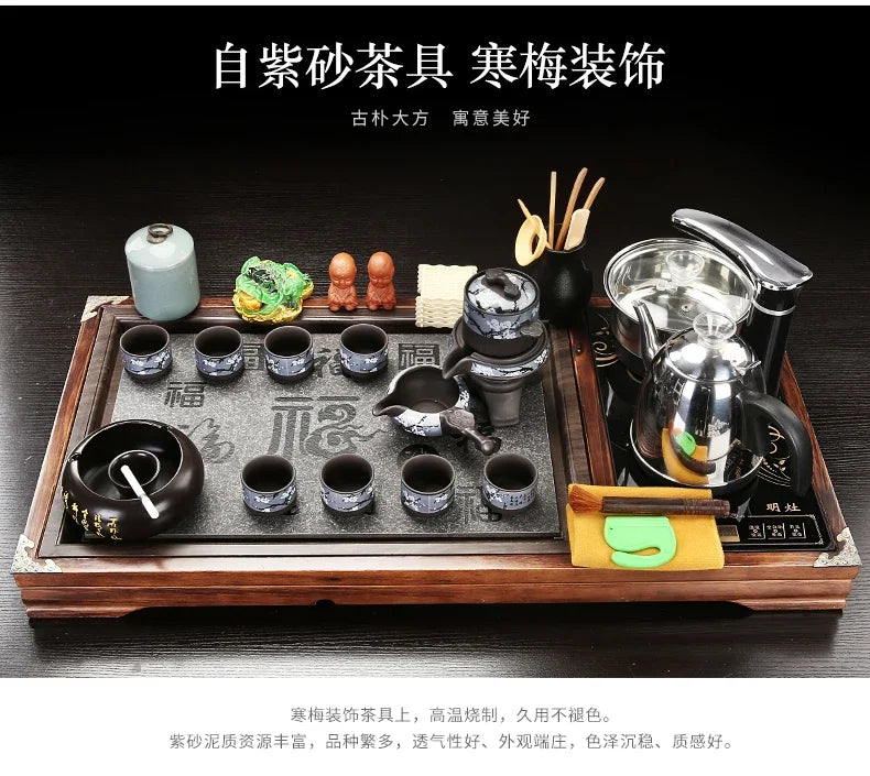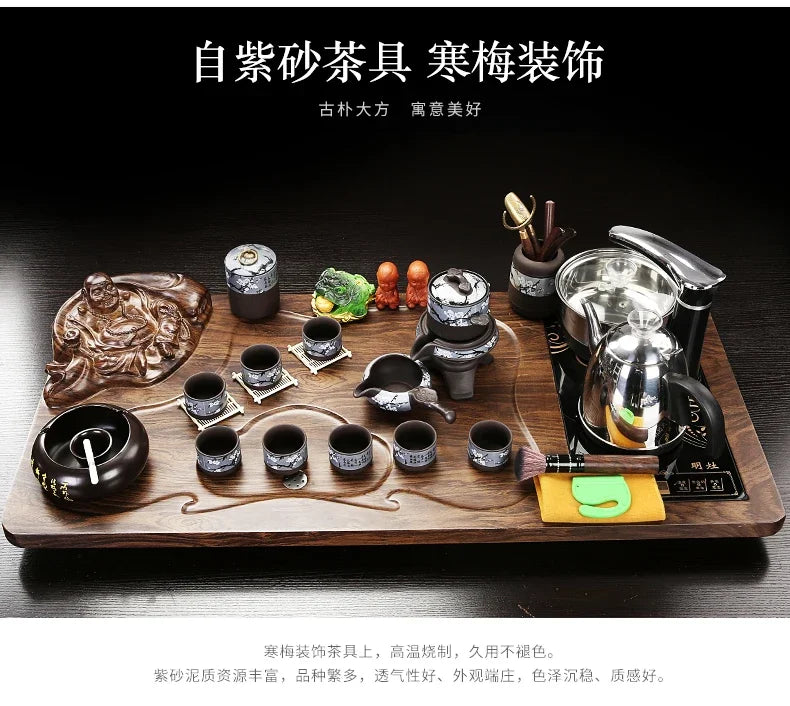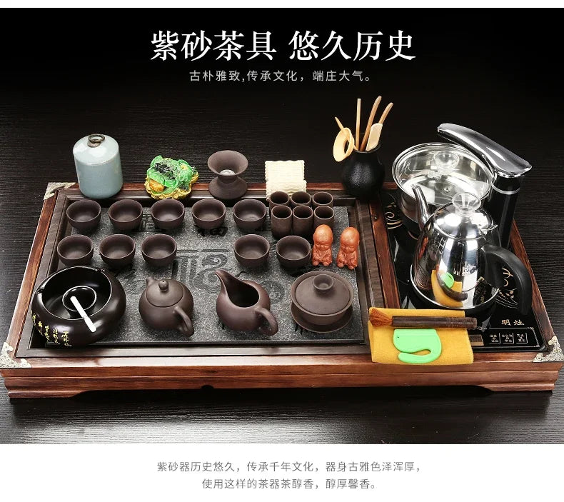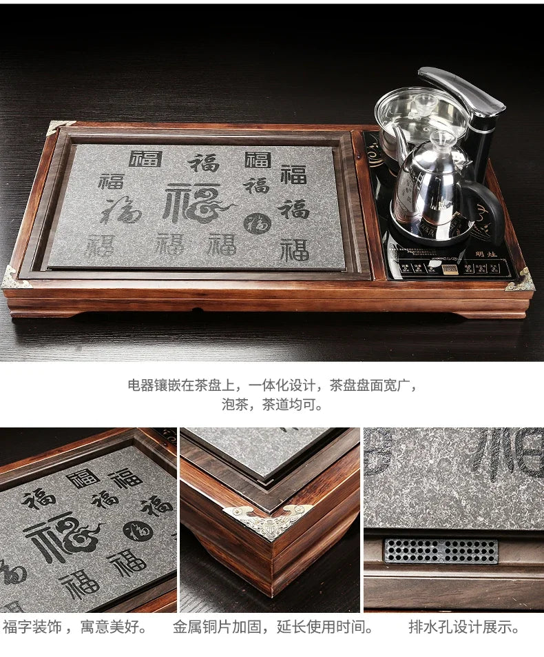 Solid Wood Tea Tray Purple Sand Kung Fu Tea Set Home Induction Cooker Drinkware Tazas De Te Coffeeware Teawar