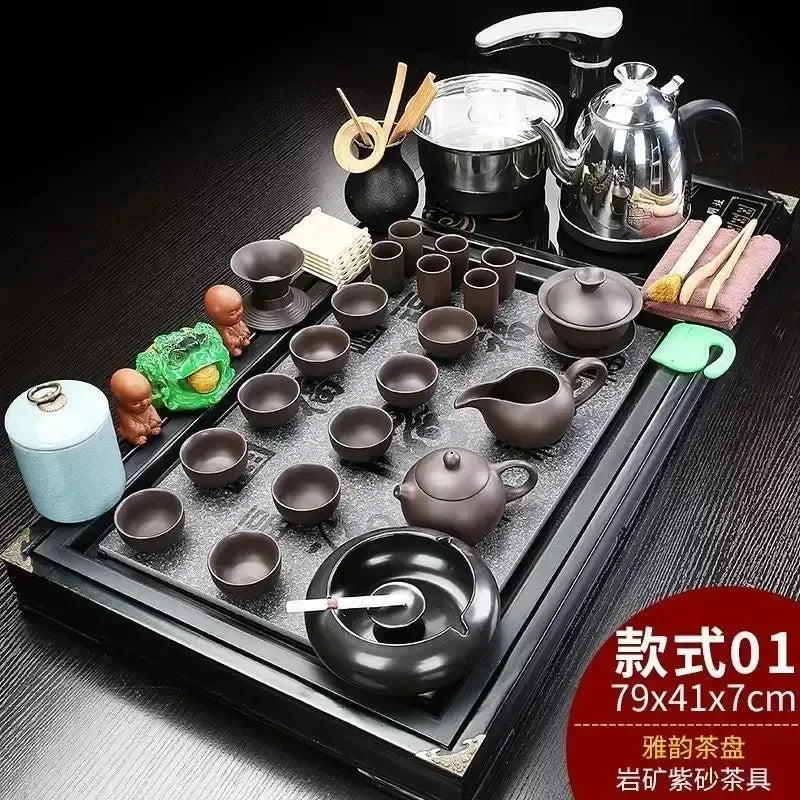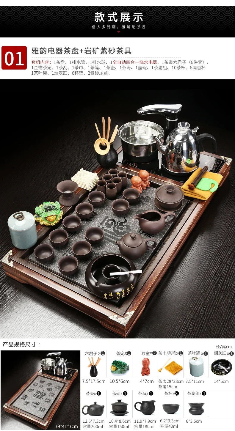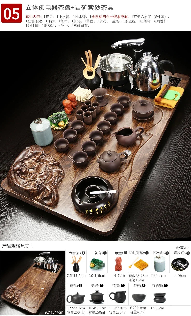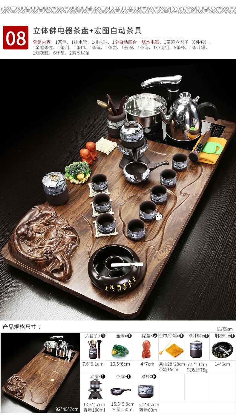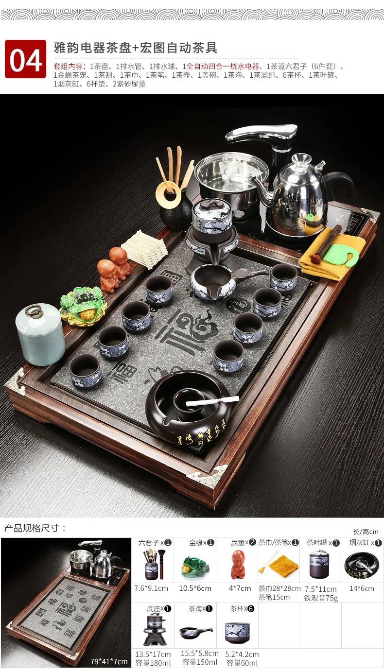 Solid Wood Tea Tray Purple Sand Kung Fu Tea Set Home Induction Cooker Drinkware Tazas De Te Coffeeware Teawar