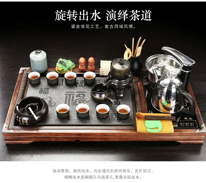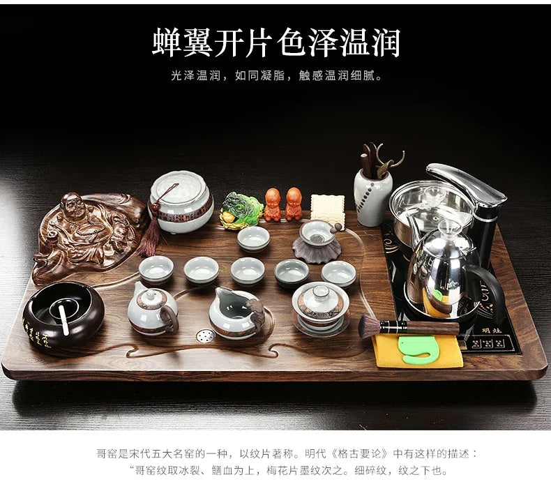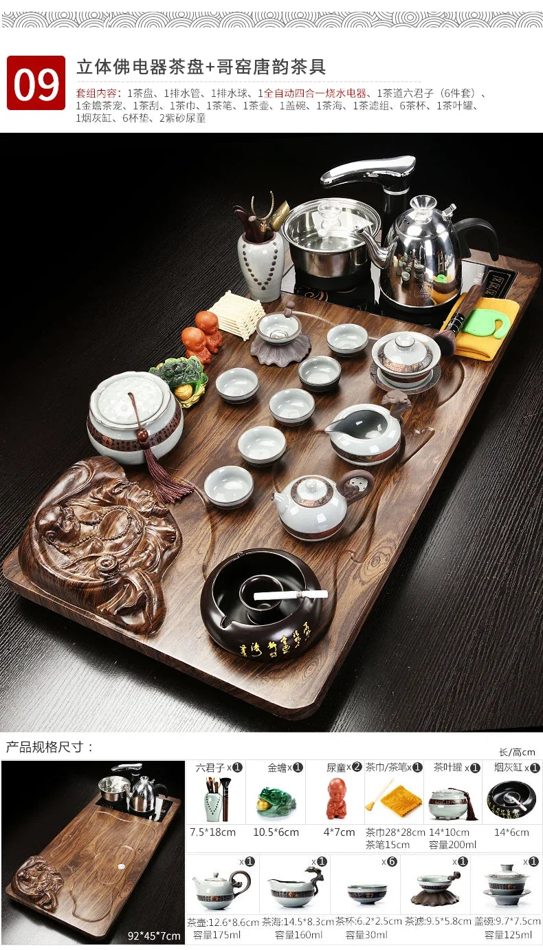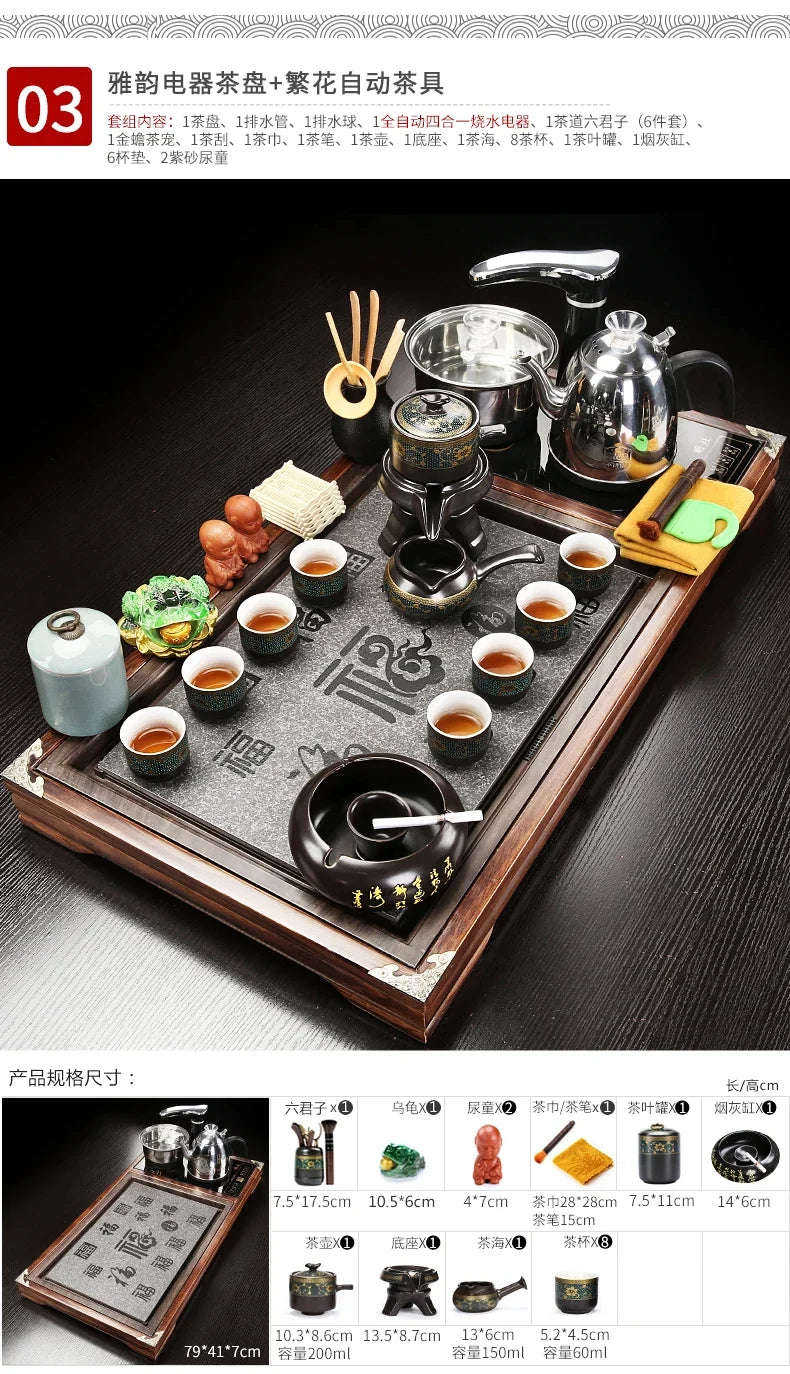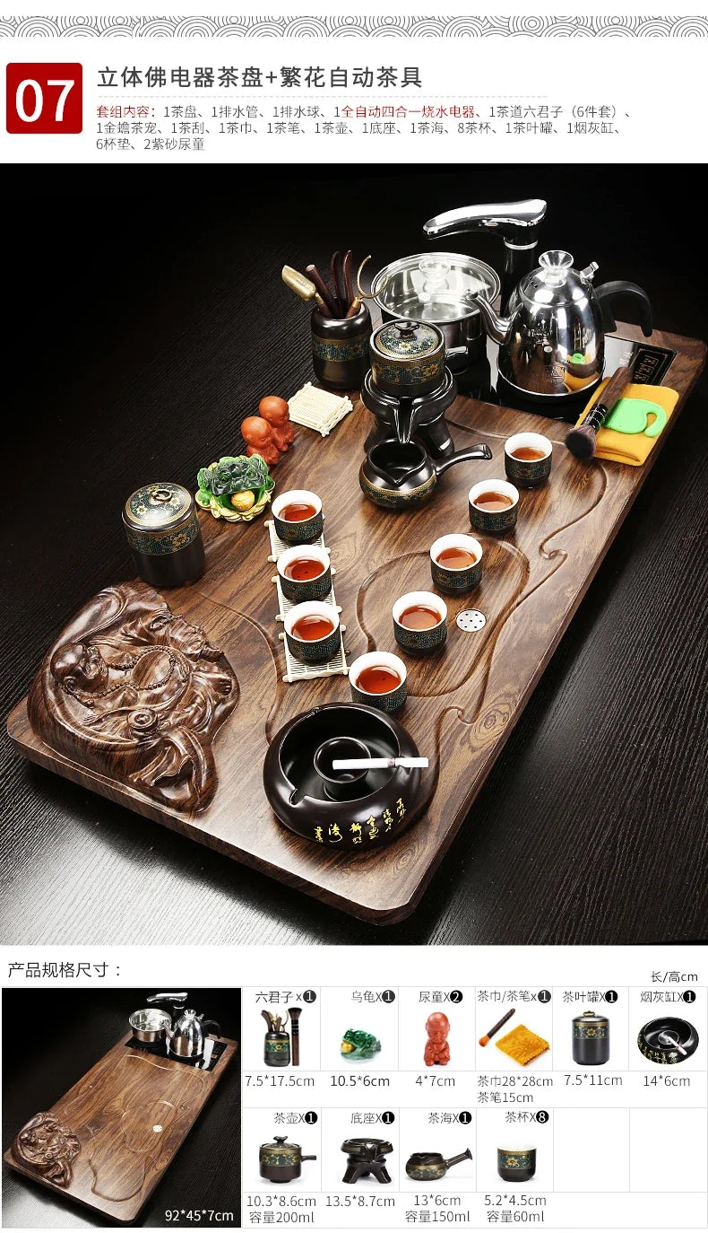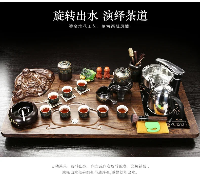 Solid Wood Tea Tray Purple Sand Kung Fu Tea Set Home Induction Cooker Drinkware Tazas De Te Coffeeware Teawar