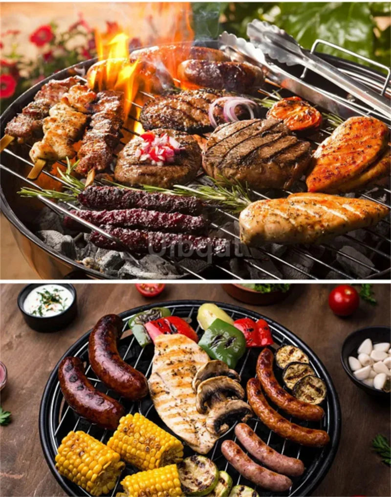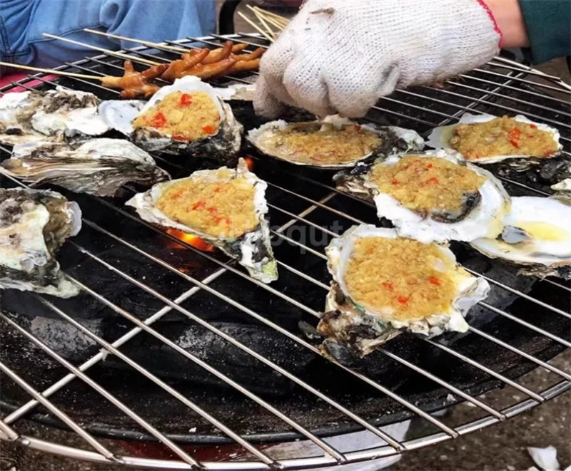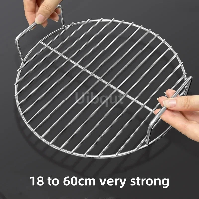Stainless Steel 304 Food Grade 18-60CM ROUND BBQ Charcoal Grate Barbecue Grill Wire Grid Mesh Net with Two handles mesh net