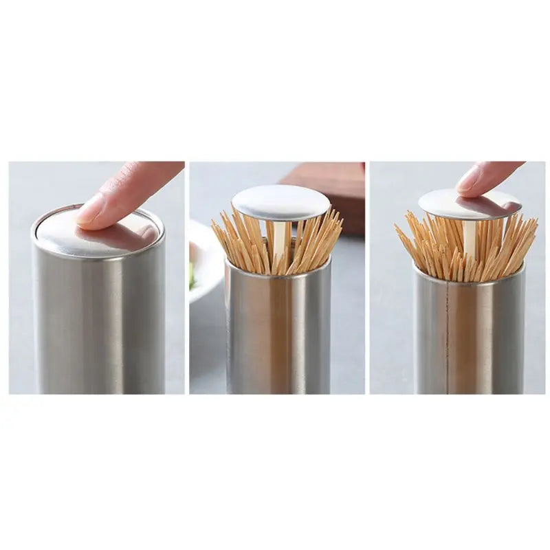 Stainless Steel Retractable Automatic Toothpick Dispenser Holder Push Style Container for Home Hotel Restaurant