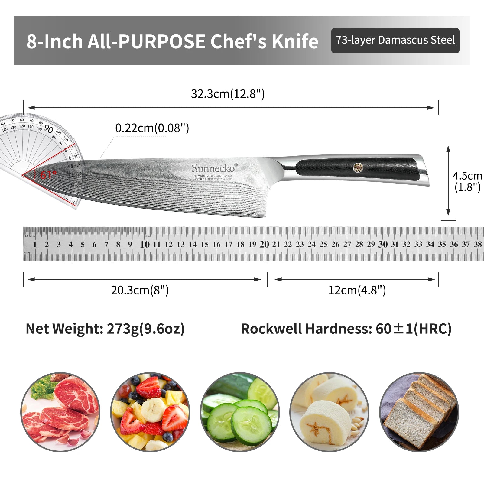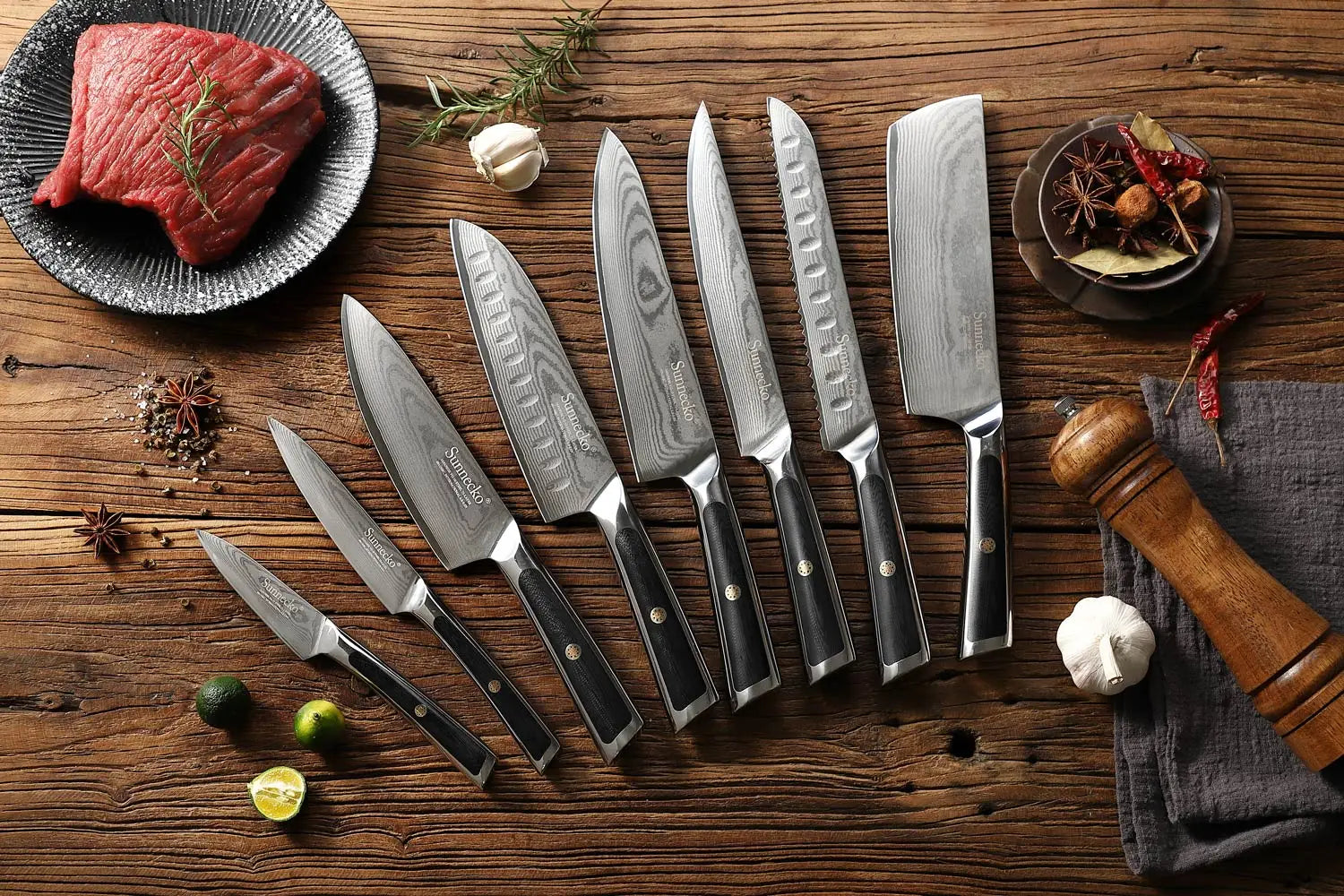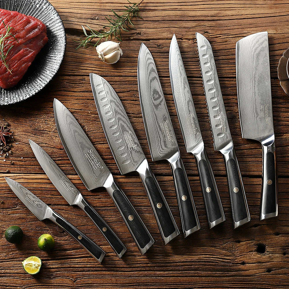 Sunnecko 1-8PCS/Set Chef's Knives 73 Layers VG10 Damascus Steel Japanese Slicing Knife Utility Paring Cleaver Cutting Knife