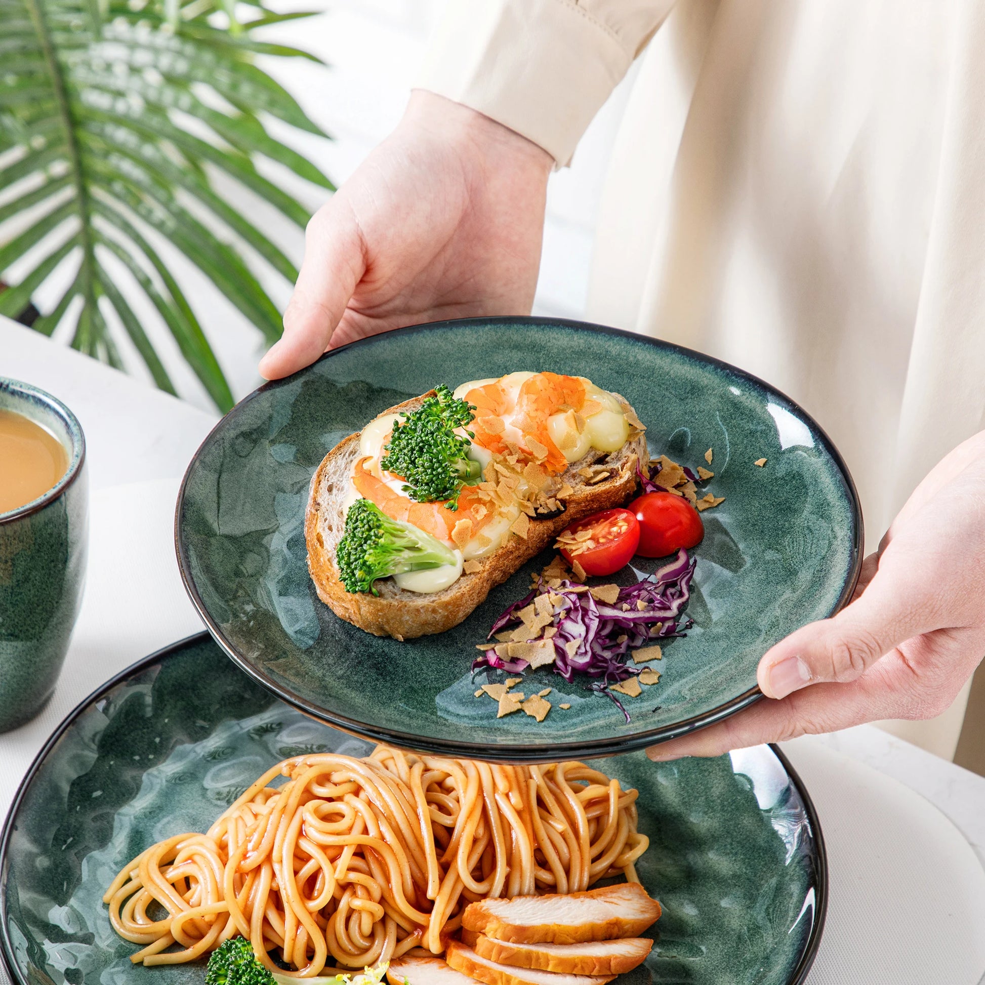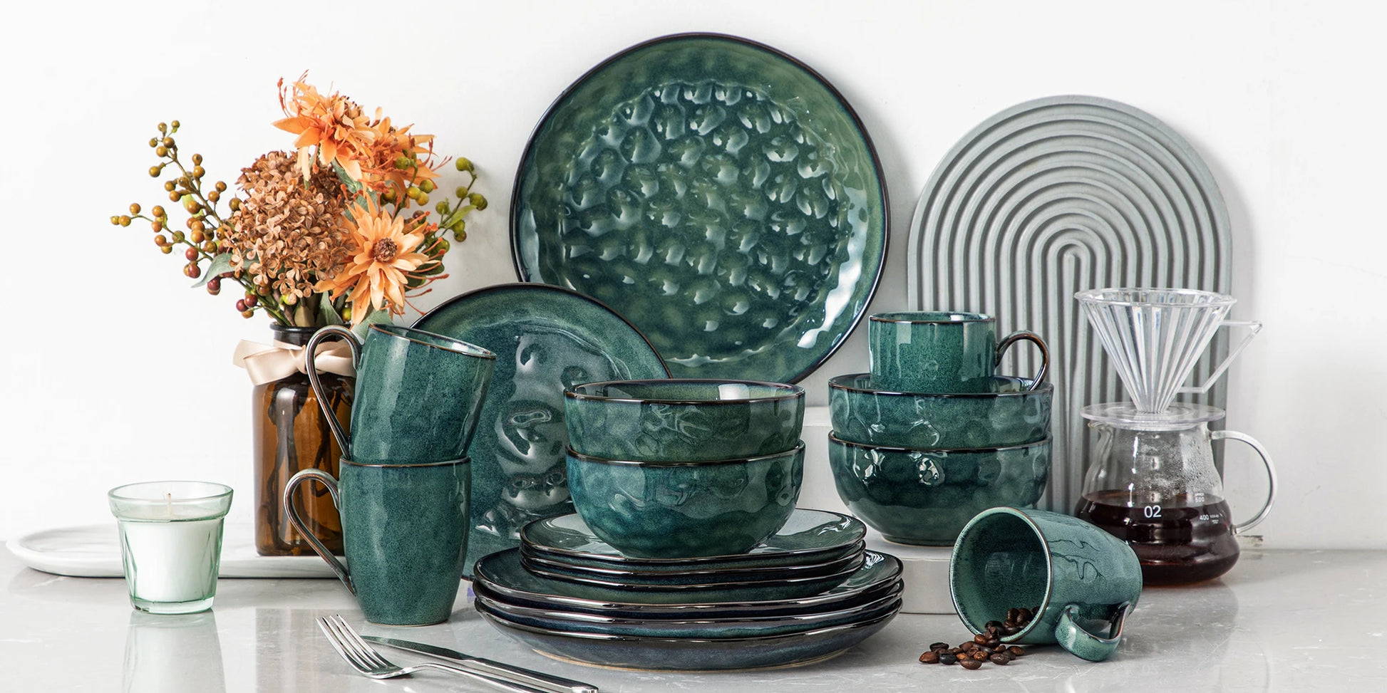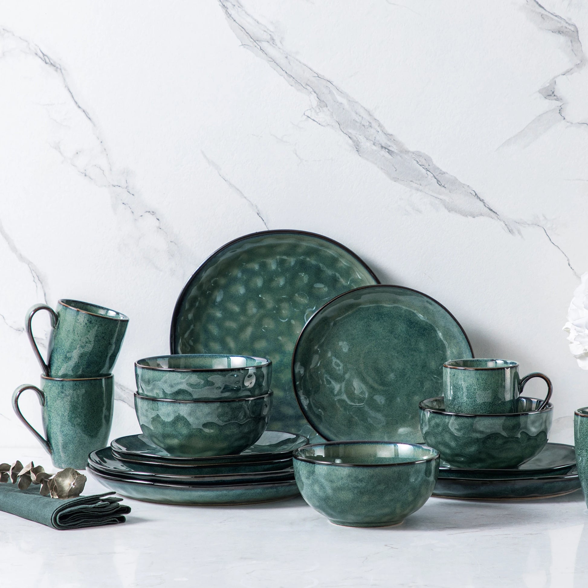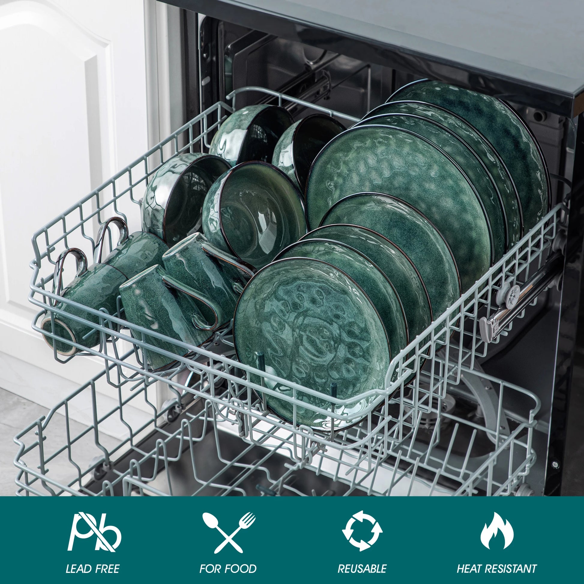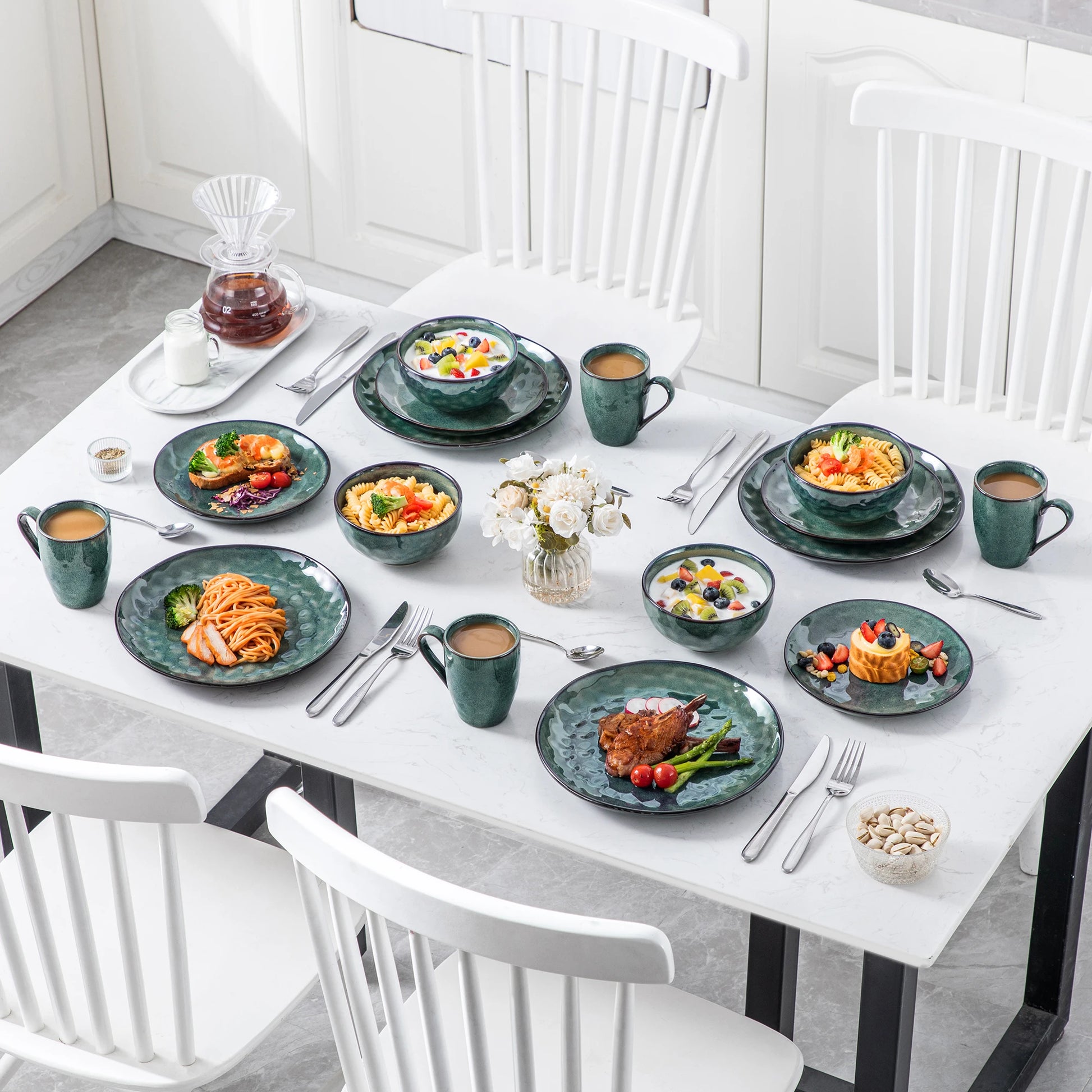 vancasso 16/32/48-Piece Starry Green Dinnerware Set,Kiln Change Glaze Porcelain Tableware Set with Dinner/Dessert Plate,Bowl,Mug