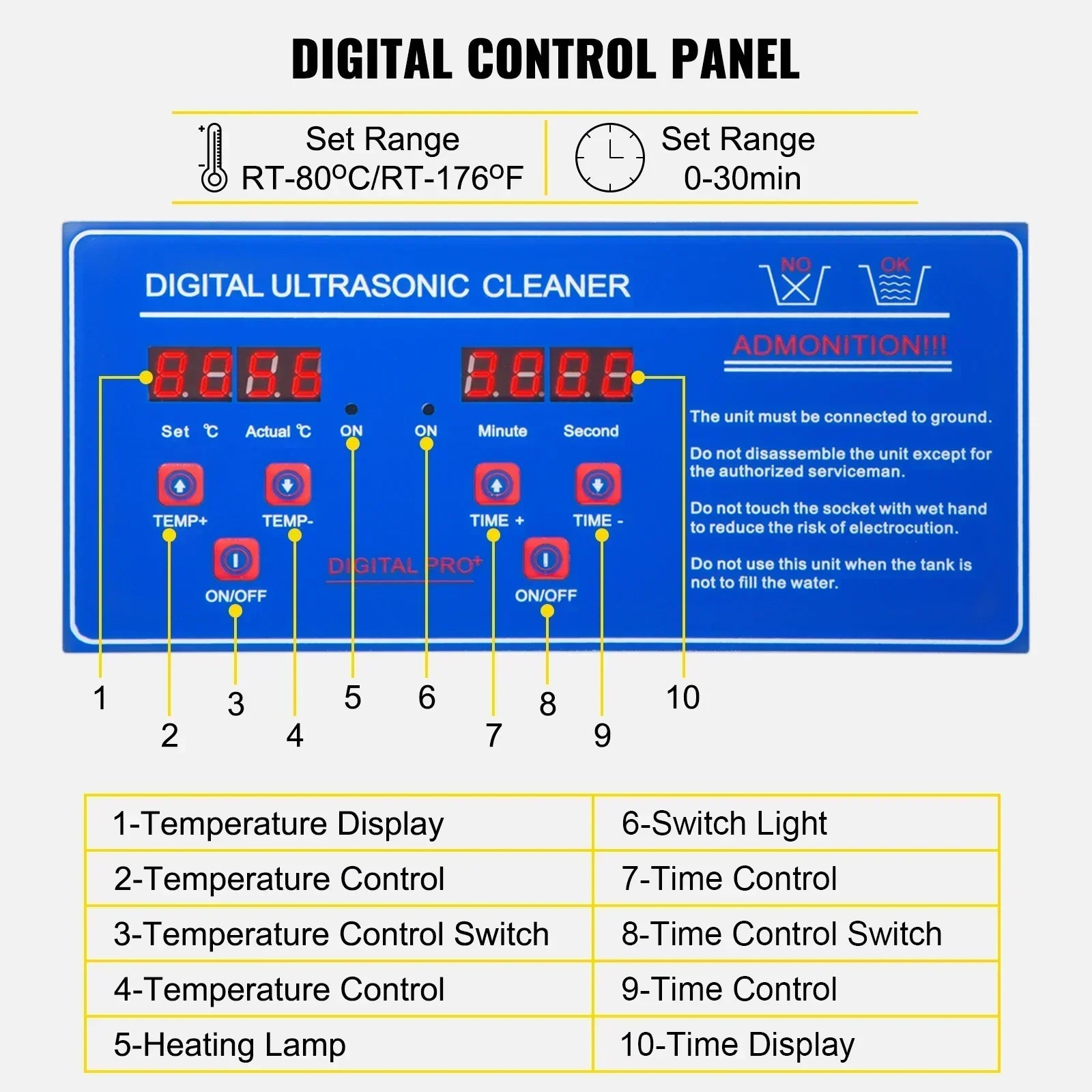 Tank Capacity: 9.6-10L (Since the bottom of the ultrasonic cleaner is a curved surface, the actual volume will be smaller.)